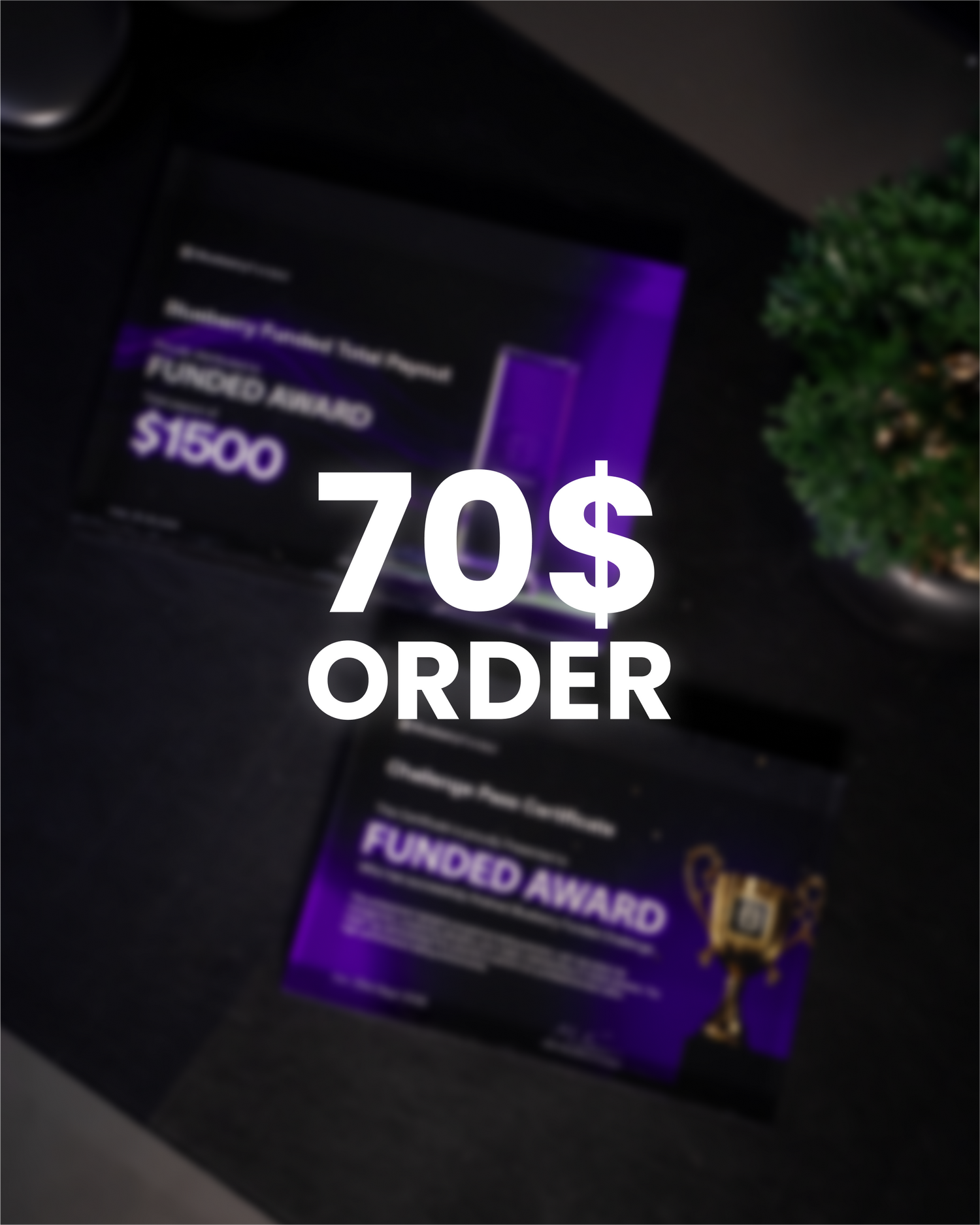 Choose your award size, quantity, upload your certificate - we then reserve a single-use Blueberry Funded code equal to your award price (before shipping), pay $70 → get $70 off your next challenge. (applicable on 50k+ challenge sizes)
